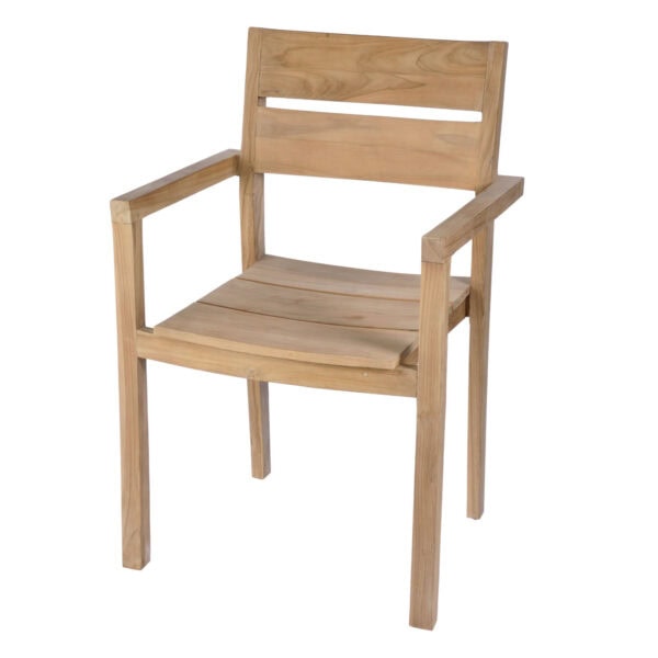 Καρέκλα από ξύλο teak σε φυσική απόχρωση. Κατάλληλη σε εξωτερικό και εσωτερικό χώρο. Μια καρέκλα από ξύλο teak προσφέρει οφέλη όπως ανθεκτικότητα, φυσική αισθητική και χαμηλές απαιτήσεις συντήρησης. Το ξύλο teak είναι πλούσιο σε φυσικά έλαια που το προστατεύουν από υγρασία, σήψη και έντομα, διαρκώντας για δεκαετίες χωρίς να στρεβλώνει ή να σκίζεται εύκολα. Επίσης, δημιουργεί μια αίσθηση ζεστασιάς και πολυτέλειας, ταιριάζοντας τόσο σε κλασικούς όσο και σε σύγχρονους χώρους.