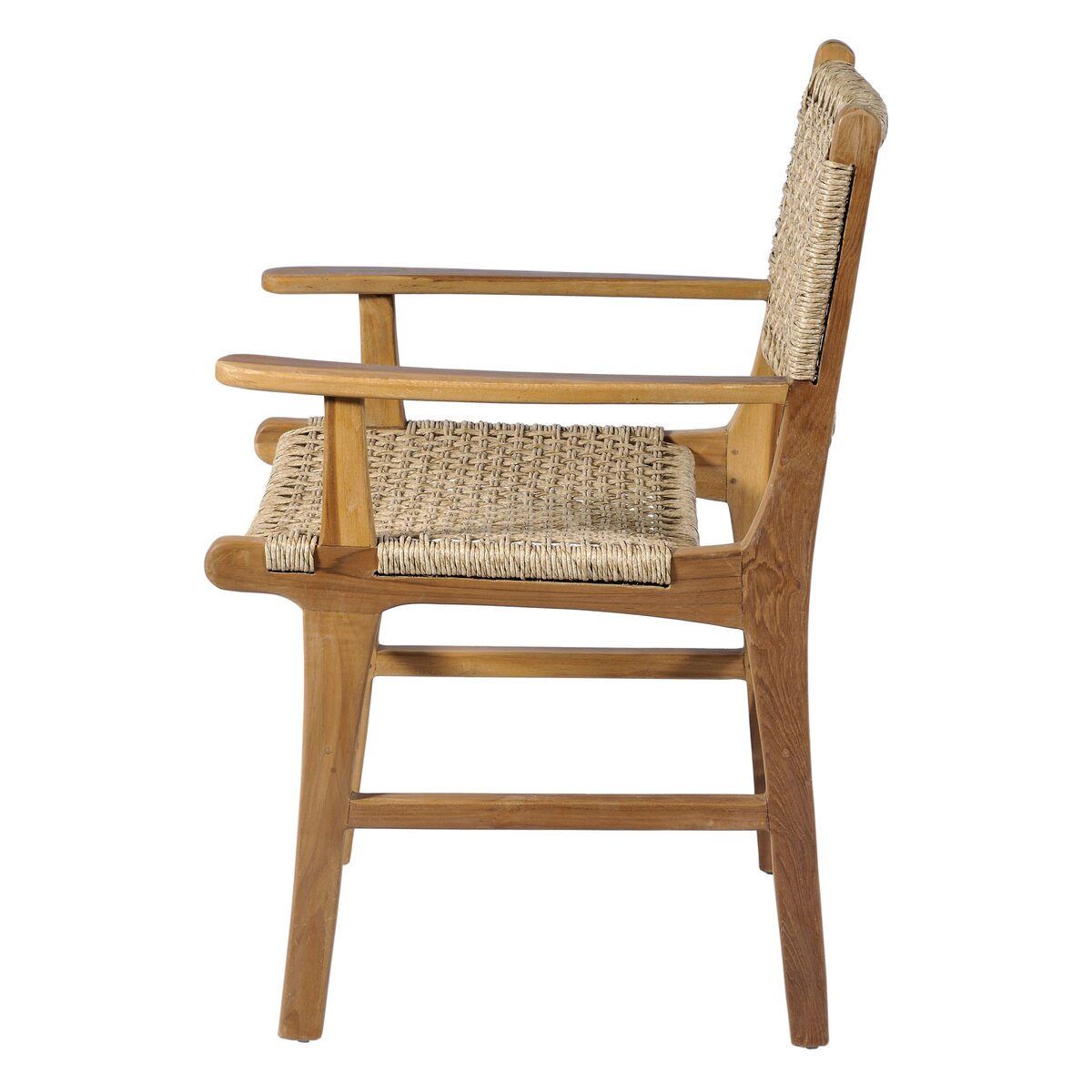 Καρέκλα Arm Catania από ξύλο Teak και συνθετικό Rattan. Κατάλληλη για εξωτερικό και εσωτερικό χώρο. Οι καρέκλες από ξύλο teak και συνθετικό rattan είναι ιδανικές για πολλά στυλ διακόσμησης, κυρίως λόγω του συνδυασμού της φυσικής ζεστασιάς του ξύλου και της ανθεκτικότητας του συνθετικού υλικού. Ο συνδυασμός αυτός τις καθιστά εξαιρετική επιλογή τόσο για εσωτερικούς όσο και για εξωτερικούς χώρους. Το στυλ boho είναι ιδανικό για καρέκλες από teak και συνθετικό rattan, καθώς ενθαρρύνει τη χρήση φυσικών υλικών, χειροποίητων υφών και την ανάμειξη διαφορετικών στοιχείων. Στο μοντέρνο στυλ, οι καρέκλες αυτές μπορούν να προσθέσουν μια πινελιά ζεστασιάς και υφής σε έναν κατά τα άλλα λιτό χώρο, ειδικά αν επιλεγούν σε πιο σκούρους ή ουδέτερους τόνους. Στα ρουστίκ και country στυλ, που επικεντρώνονται σε φυσικά και ζεστά υλικά, οι καρέκλες από teak και συνθετικό rattan βρίσκουν την απόλυτη αρμονία. Το σκανδιναβικό στιλ διακρίνεται για τη φωτεινότητα, την απλότητα και τη χρήση φυσικών υλικών.