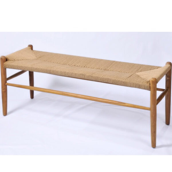 Πάγκος DONNA από ξύλο Teak. Ο συνδυασμός του ξύλου teak με το ύφασμα Loom σε έναν πάγκο είναι μια εξαιρετική επιλογή για κομψά και ανθεκτικά έπιπλα. Το ξύλο teak είναι γνωστό για την αντοχή του, ενώ το Loom προσθέτει μια μοναδική, υφαντή αίσθηση. Ο συνδυασμός των δύο υλικών δημιουργεί ένα μοντέρνο και boho-chic στυλ. Είναι ιδανικός τόσο για εσωτερικούς χώρους (π.χ. τραπεζαρία, σαλόνι) όσο και για εξωτερικούς (π.χ. κήπο, βεράντα).
