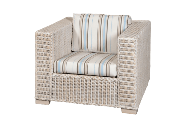 Πολυθρόνα από φυσικό Rattan σε λευκό χρώμα. Οι πολυθρόνες από rattan προσφέρουν φυσική ζεστασιά και κομψότητα, ενσωματώνοντας την αίσθηση της φύσης και δημιουργώντας χαλαρή ατμόσφαιρα. Συνδυάζονται άψογα με φυσικές υφές όπως λινό και βαμβάκι, ταιριάζουν σε μινιμαλιστικά, tropical/eco-chic και boho στυλ, και προσφέρουν ευελιξία καθώς χρησιμοποιούνται σε φωτιστικά, καρέκλες και τραπέζια. Επιπλέον, η χρήση φυσικού rattan επιτρέπει τη δημιουργία ενός συνεχούς δεσμού με τη φύση, ενώ η ανθεκτικότητα προσφέρει μακροχρόνια χρήση και λιγότερη συντήρηση.