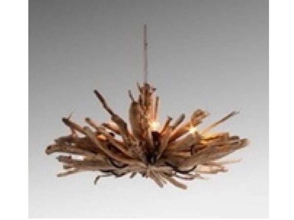 Κρεμαστό φωτιστικό οροφής από φυσικά κλαδιά ξύλου Teak. Πρόκειται για ένα πολύφωτο φωτιστικό που ξεκινάει με ένα κορμό ξύλου και καταλήγει με πολλά μικρά, λεπτά και άνισα ξύλα, που ανάμεσα τους βγαίνουν οι λάμπες. Θα μπορούσε ταιριάξει σε πολλά στυλ διακόσμησης από σκανδιναβικό και μίνιμαλ έως ρουστίκ και μοντέρνο. Ένα φωτιστικό που θα απογειώσει τον χώρο σας, δίνοντας του ιδιαίτερο χαρακτήρα και στυλ.
