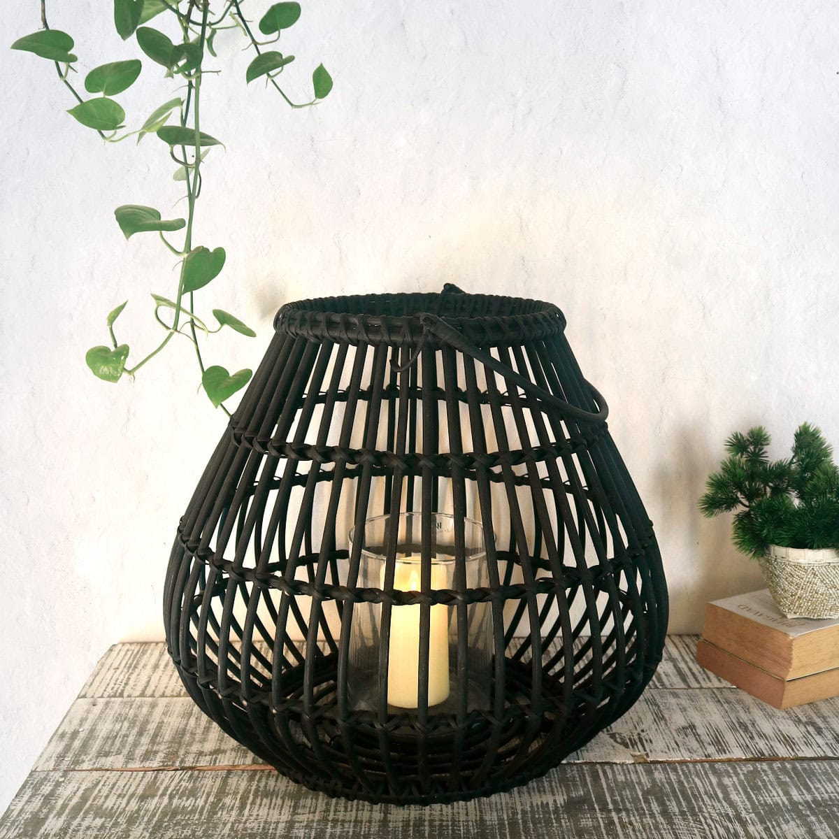 Φανάρι Koko από φυσικό Rattan και γυαλί σε μαύρη απόχρωση.