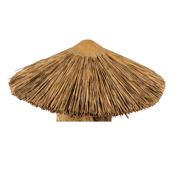 Καπέλο κώνος ομπρέλας από το τροπικό καλάμι Thatch. Ένα καπέλο-κώνος ομπρέλας από Thatch, είναι ένα ειδικό αξεσουάρ που χρησιμοποιείται για την κορυφή της ομπρέλας, προσδίδοντας ένα αυθεντικό, τροπικό στυλ και εξασφαλίζοντας παράλληλα στεγανότητα. Κατασκευάζεται από φυσικό καλάμι Thatch, το οποίο προέρχεται από τροπικές φυτείες. Προσφέρει μια εξωτική, φυσική εμφάνιση, ιδανική για να δημιουργήσει μια τροπική ατμόσφαιρα σε κήπους, πισίνες, μπαρ και παραλίες. Εκτός από διακοσμητικό στοιχείο, ο κώνος Thatch συμβάλλει στην αδιαβροχοποίηση και τη μόνωση, προσφέροντας δροσιά.
