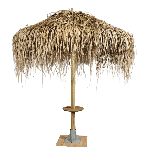 Ομπρέλα με κάλυμμα από Palmleaf. Μια ομπρέλα με κάλυμμα από Palmleaf είναι μια εξαιρετική επιλογή για να δημιουργήσετε μια εξωτική και φυσική ατμόσφαιρα σε εξωτερικούς χώρους, όπως η βεράντα, ο κήπος ή η παραλία. Τα καλύμματα αυτά κατασκευάζονται από φύλλα ασιατικού φοίνικα και είναι γνωστά για την αντοχή τους και τη φυσική τους σκίαση. Μπορούν να είναι πλεκτά ή ραφτά, με τα ραφτά να είναι πιο συμπαγή και σχεδόν στεγανά. Προσφέρουν μια τροπική, χαλαρωτική ατμόσφαιρα, ιδανική για διακόσμηση κήπου, πισίνας ή παραλίας. Αν και είναι ανθεκτικά, καλό είναι να ελέγχετε την κατάστασή τους περιοδικά και να τα αποθηκεύετε κατά τη διάρκεια του χειμώνα για να παρατείνετε τη διάρκεια ζωής τους.