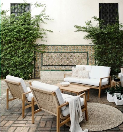 Σετ σαλονιού DUMAI Living Set 4 τεμαχίων είναι η ιδανική επιλογή για όσους αναζητούν ένα κομψό και ανθεκτικό σετ σαλονιού κήπου. Κατασκευασμένο από φυσικό teak ξύλο, ενισχυμένο αλουμινένιο σκελετό και πλάτη από συνθετικό rattan, συνδυάζει υψηλή αισθητική με κορυφαία αντοχή στις εξωτερικές συνθήκες.
