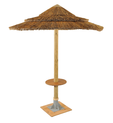 Ομπρέλα με κάλυμμα από φύλλα THATCH CLASSIC Νοτίου Αφρικής. Μια ομπρέλα με κάλυμμα από φύλλα THATCH CLASSIC, είναι μια εξαιρετική επιλογή για όσους επιθυμούν να δημιουργήσουν μια αυθεντική, τροπική ατμόσφαιρα σε εξωτερικούς χώρους, όπως η παραλία, η πισίνα ή ο κήπος. Το υλικό αυτό προσφέρει αντοχή και φυσική σκίαση, ενώ το στυλ του παραπέμπει σε εξωτικούς προορισμούς. Το THATCH CLASSIC είναι κατασκευασμένο από 100% φυσική αφρικανική καλαμιά, γνωστή για τη μεγάλη αντοχή της στις καιρικές συνθήκες. Τα φύλλα THATCH τοποθετούνται σε ειδικά πλακίδια ή ράβονται πάνω σε έναν σκελετό, συνήθως από γαλβανισμένο σίδερο ή εμποτισμένο ξύλο. Είναι ένα υλικό με εξαιρετική αντοχή στον ήλιο και την υγρασία, εξασφαλίζοντας μεγάλη διάρκεια ζωής στην ομπρέλα. Προσφέρει μια εξωτική, ρουστίκ και ταυτόχρονα καλαίσθητη εμφάνιση, ιδανική για να ενισχύσει το στυλ του εξωτερικού σας χώρου.